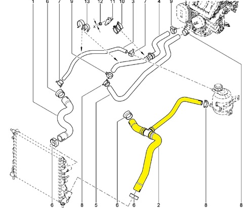 Патрубок радиатора нижний для 8-ми и 16-ти клапанных двигателей Renault Logan, Sandero (до 2014 года), Lada Largus. От расширительного бачка к радиатору охлаждения. С завода идёт тройной на тройнике. Неоригинал производит 3 патрубка, которые одеваются на родной тройник. Ростеко, Россия.